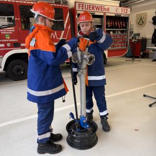 Standrohr setzen: Eine wichtige praktische Übung, bei der die korrekte Handhabung und Installation des Standrohrs am Hydranten gezeigt werden musste.