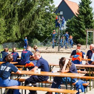 Auch das Spiel ohne Grenzen der Jugendfeuerwehren fand an diesem Tag in Hohenbostel statt: 15 Gruppen aus Kinder- und Jugendfeuerwehren der Stadt gingen an den Start, um bei verschiedenen Spielen Geschicklichkeit und Teamgeist unter Beweis zu stellen.
