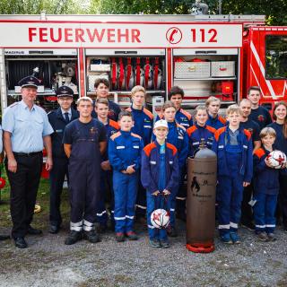 Besonderes Lob der Redner wurde dabei Jugendwart Florian Rust und Kinderfeuerwehrwartin Lisa Weissensee für ihre gute Nachwuchsarbeit zuteil. Neben den verschiedenen Aufmerksamkeiten der Gäste gab es von Ortsbrandmeister Ralf Buch eine alte Gasflasche, die zur Feuertonne umgebaut worden war.