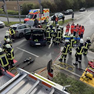 An der Einsatzstelle waren zwei PKW kollidiert, wobei eine Person verletzt wurde. Beim Eintreffen der Feuerwehr befand sich die verletzte Person noch im Fahrzeug und wurde vom Rettungsdienst versorgt.